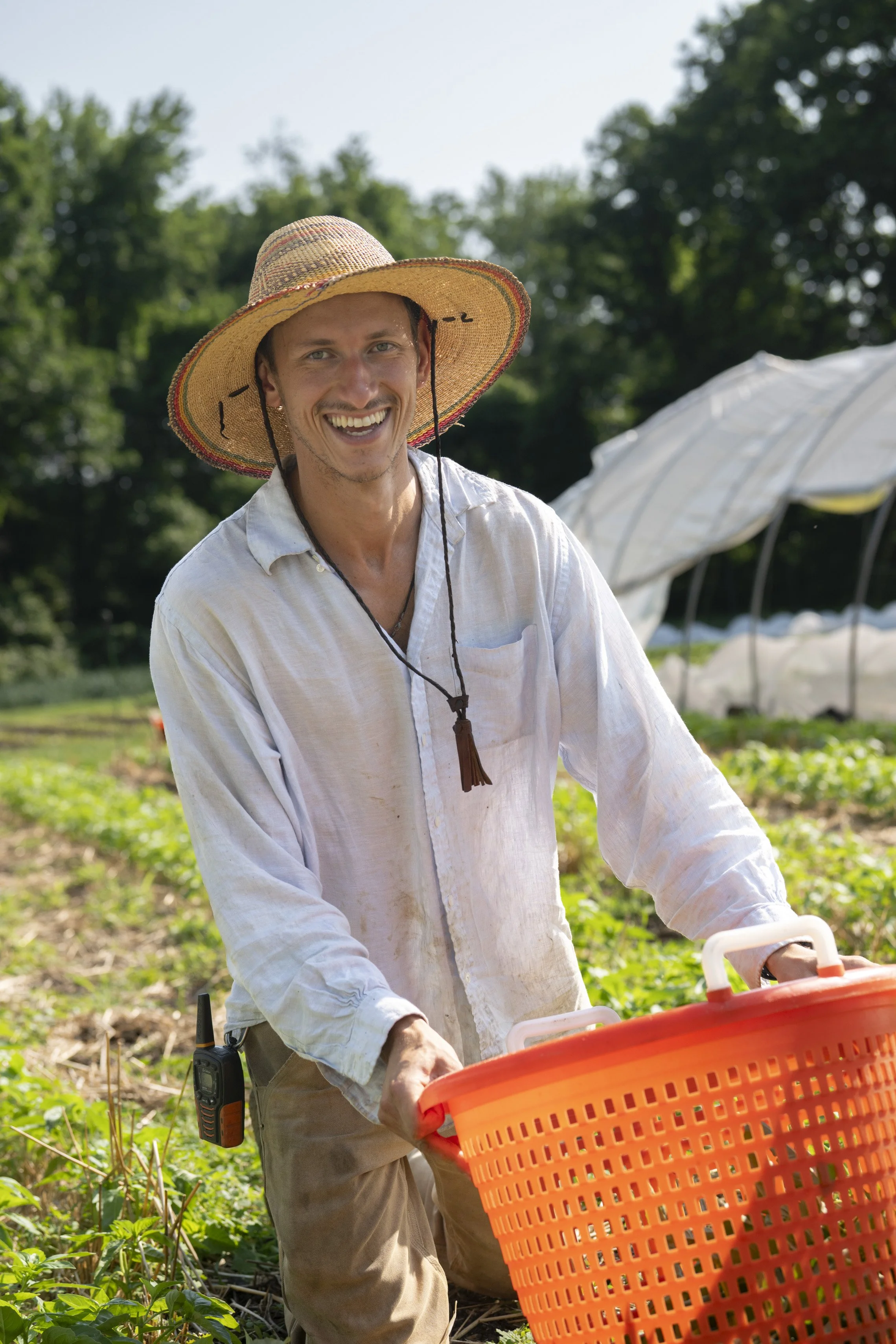 Jared has over ten seasons experience in organic agriculture. He grew up in Eastern MA and is excited to call Buckland his new home. Jared lives on the farm with his wife, Margaret, two kids, and dog.